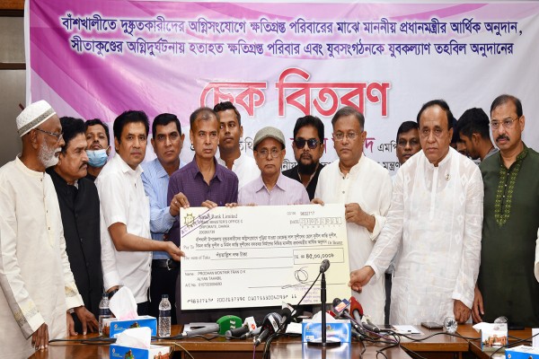 অনুষ্ঠানে বাঁশখালীতে অগ্নিসংযোগে ক্ষতিগ্রস্ত তেজেন্দ্র লাল শীলের ৩ ছেলে বিমল কান্তি শীল, নির্মল কান্তি শীল ও সুনীল কান্তি শীলের পরিবারকে পরিবার প্রতি ১৫ লক্ষ করে ৪৫ লক্ষ টাকার অনুদানের চেক হস্তান্তর করা হয়।