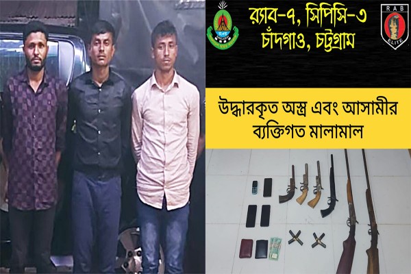 আগ্নেয়াস্ত্র ও গোলাবারুদ উদ্ধার, গ্রেফতার ৩